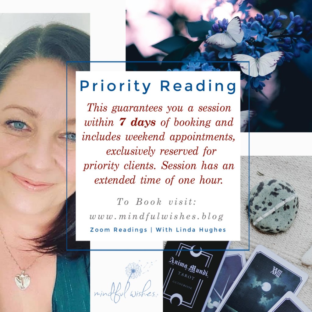 As I am normally fully booked a few months in advance, If you need to see me more urgently, require a weekend appointment, or would like a longer one hour session, please book the following Priority Reading.